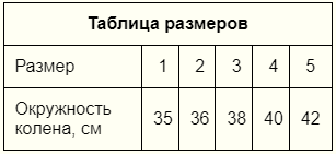 Таблица размеров